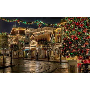 絵画風 壁紙ポスター クリスマス ライト X'mas ディズニーランド カリフォルニア 夜景 ストリート キャラクロ DNLC-017W2 (ワイド版 603mm×376mm)