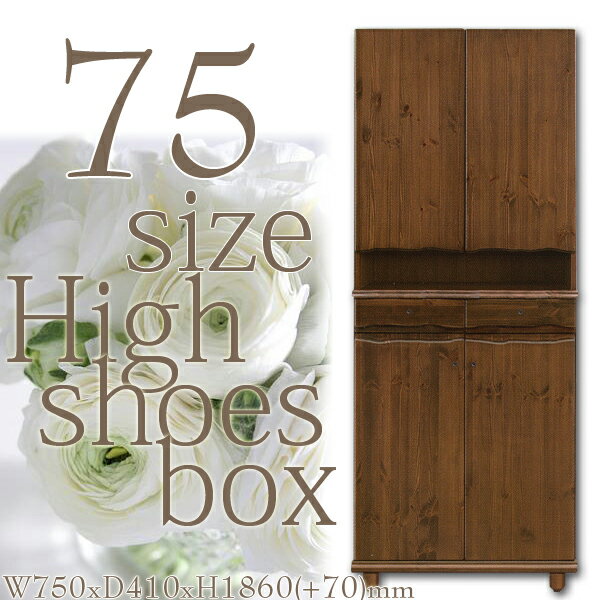 下駄箱 ハイタイプ 75幅 シューズボックス 木製シューズボックス 靴箱 靴入れ 下足箱 靴収納棚 シューズラック 靴ラック 玄関収納 くつ収納 オープンスペース有り 引き出し 天然木 無垢材 高級 シンプル おしゃれ 日本製 大川ブランド【送料無料】(一部地域 別途見積)