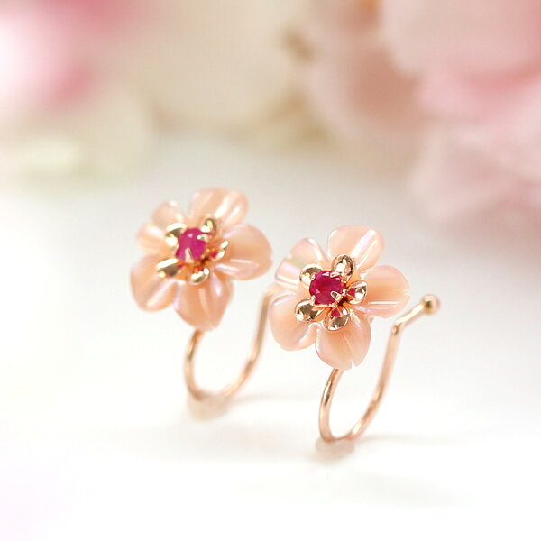 *ピンク* ピンク蝶貝×ルビー *ホワイト* 白蝶貝×ピンクトルマリン 石 【ピンク】ピンク蝶貝/ルビー 【ホワイト】白蝶貝/ピンクトルマリン 材質 K10ピンクゴールド >>18金でもおつくりできます! 大きさ 全長12×8mm 蝶貝 8×8mm ピンクゴールドの花 4×4mm ジュエル 直径1.5mm 留め具 クリップ式 品番 P1045746-7 ご注意ください ※イヤリングは、同シリーズのピアスのように2WAYではありませんのでご了承くださいませ。