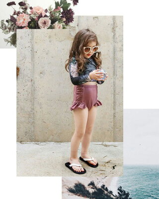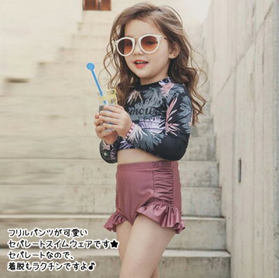 【送料無料 宅メ】キッズ フリルセパレートスイムウェア ラッシュガード 女の子 水着 子ども 花柄 リゾート 水泳 夏 海 プール スイミング 日焼け防止 80 90 95 100 110 120 130 140 2歳 3歳 4歳 5歳 6歳 7歳 8歳 9歳 10歳 幼稚園 保育園 小学生 韓国 RSSW-K15 220603