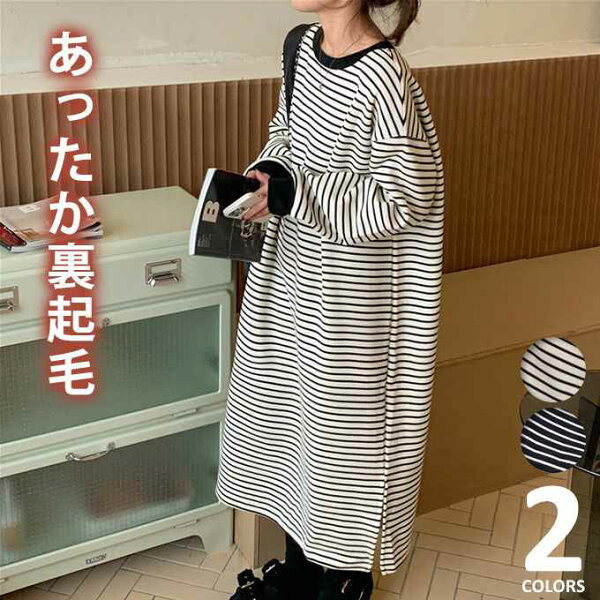 カジュアルなボーダー柄がかわいい、裏起毛のあったかワンピースです。
