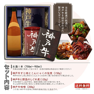御歳暮/お歳暮/冬ギフト/クリスマス/お中元/お祝い/御祝/誕生日プレゼント/高級/豪華/贅沢/ゴージャス/たっぷり/神戸ビーフ/和牛/神戸牛すじ肉とこんにゃくの旨煮/神戸牛と野菜のしぐれ煮/神戸牛味噌/おつまみ付き/お酒/日本酒/プレミアム焼酎/プレミアム酒/上司/お世話になった方/