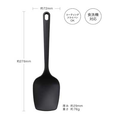 ●鍋やフライパンのカーブや底面にフィットしてすくいやすい形状で、袋に入れた食材もスミまで届き、中身を取り出すのにも便利です。