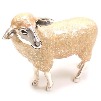 置き物 オブジェ シルバー925 羊 ヒツジ 大 エナメル彩色 イタリア製 サツルノ インポート