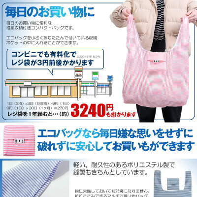 エコバッグなら毎日嫌な思いをせずに 破れずに安心してお買いもができます 毎日のお買い物に便利な 格納収納付きコンパクトバッグです。