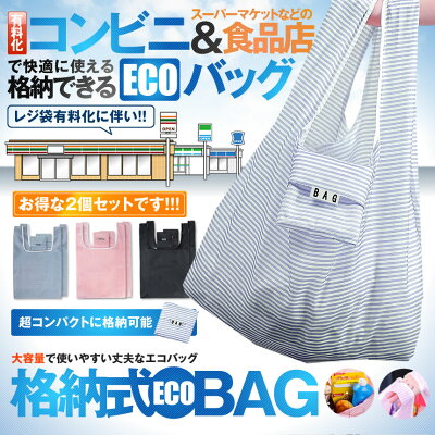 コンビニ お買い物 エコバッグ 2個セット ECO 折りたたみ 大容量 軽量 格納 収納 便利 レジ袋 おしゃれ tecc-ecobag2s