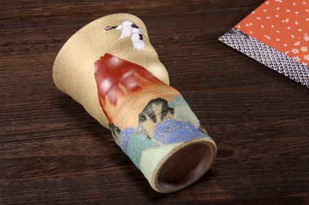 九谷焼 フリーカップ (特大) 金彩鳥 富士鶴 九谷焼 湯呑 カップ ビアカップ ビールグラス ビアグラス タンブラー カップ ビアマグ 和食器 フリーカップ 焼酎カップ ロックカップ 焼酎グラス ロックグラス