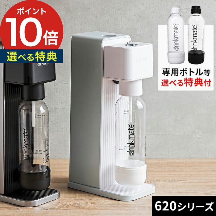 【p10】【楽天限定特典付き】 炭酸水メーカー ドリンクメイト 620シリーズ スターターセット カートリッジ不要 炭酸飲料 炭酸 ソーダ メーカー マシン 家庭用 水 ジュース お酒 アルコール ホワイト ブラック DRM1010 DRM1011 60Lドリンクメイト 620シリーズ スターターセット DRM1010 DRM1011 (炭酸水メーカー ソーダマシン ソーダメーカー) 豪華 特典付き 微炭酸から強炭酸まで ボタンひとつで自動注入 家庭で簡単に炭酸飲料が作れる「ドリンクメイト」のシリーズ620は、炭酸濃度の自動設定が可能になったオートマチックモデル。